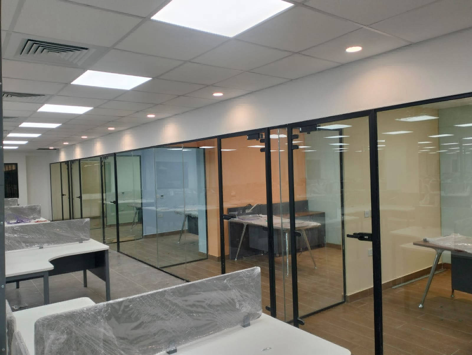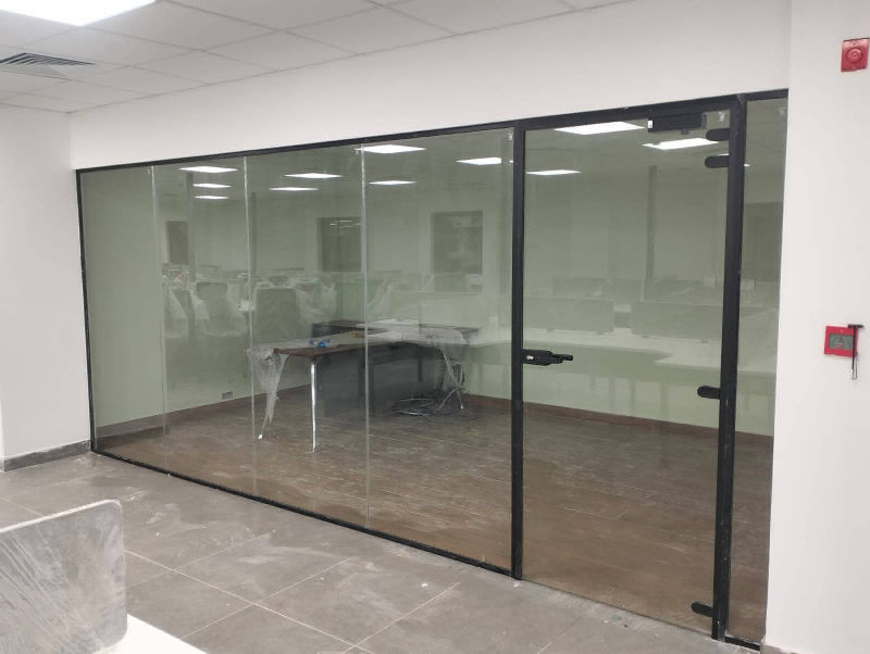 We have an expert team to build perfect office glass partition works. We use glass types ranging from 10mm to 20mm toughened (tempered) clear glass. This thickness is used for indoor office partitions such as office cabins, conference rooms, and meeting enclosures. We also offer acoustic (soundproof) laminated glass options, frosted or film-coated privacy designs, and sliding or hinged door installations.